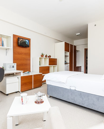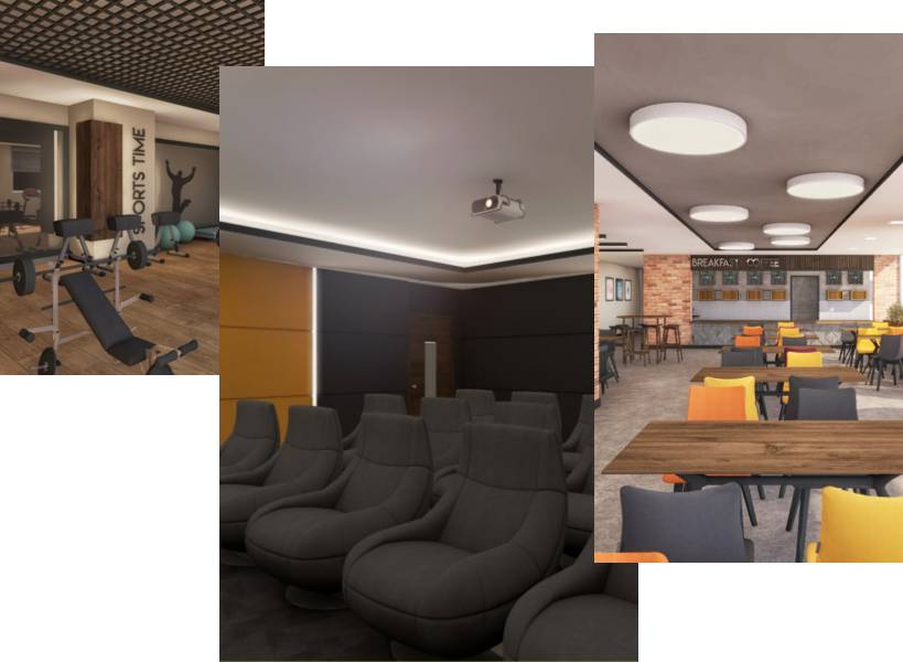 Ortak Kafetarya alanlarından, kız ve erkek öğrenciler için ayrı ayrı planlanmış etüt alanları, sinema salonları, fitness salonları, sinema salonları, sosyal alanlar ve mutfaklar olarak bir çok alanı tesis içerisinde sunmaktayız.